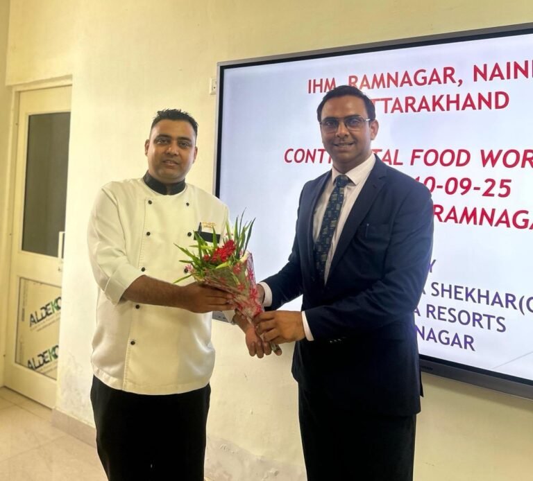 Continental food workshop was conducted on 10/09/2025 by Chef Chandra Shekhar (CDP) of Aahana Resort-5*, Ramnagar. Workshop provided hands-on training in Western cuisines, enhancing students’ culinary skills for professional kitchens. The sessions focused on techniques from French, Italian, and other Western traditions, preparing participants for roles in fine-dining Hotels and International hospitality.