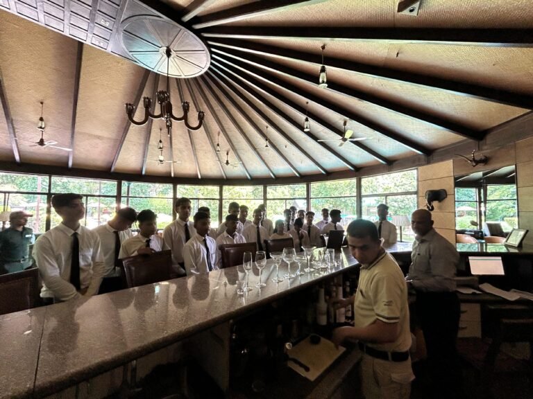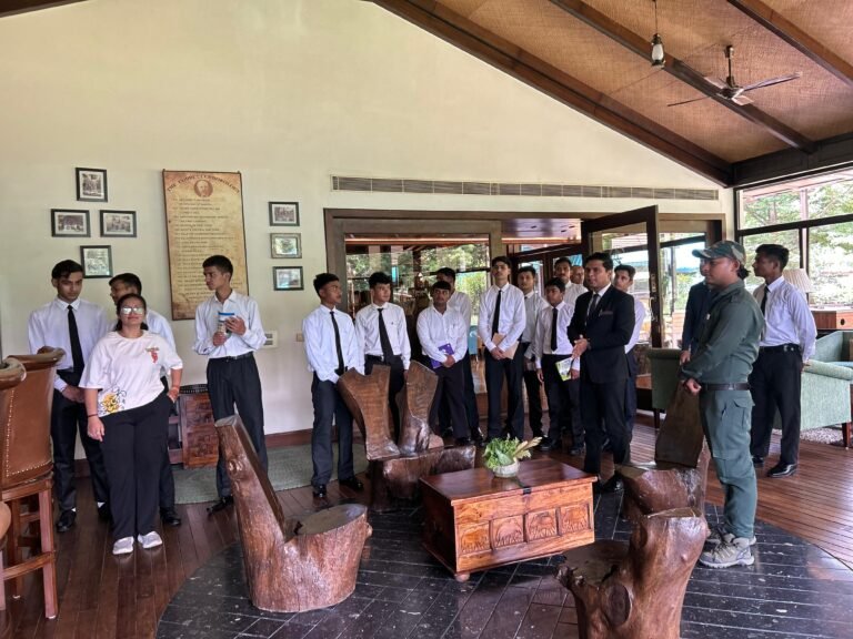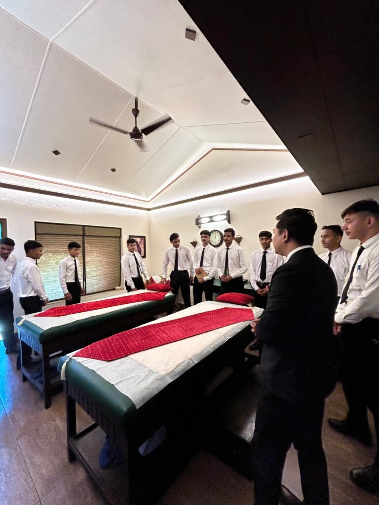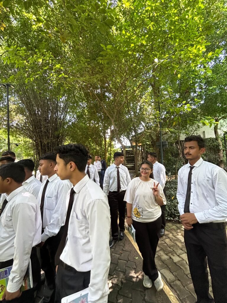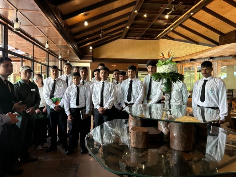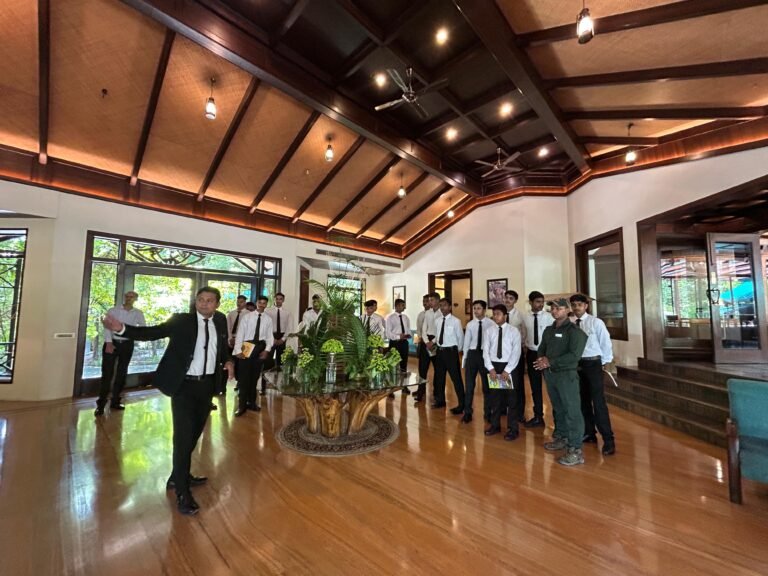 During the visit, the students were given a detailed orientation on various operational departments including Front Office, Housekeeping, Food Production, and Food & Beverage Service. The departmental heads and trainers at Aahana explained the standard procedures, guest service protocols, and sustainability practices that contribute to the resort’s five-star reputation. Students also gained insight into eco-friendly initiatives such as waste management, organic farming, and energy conservation techniques employed by the property.