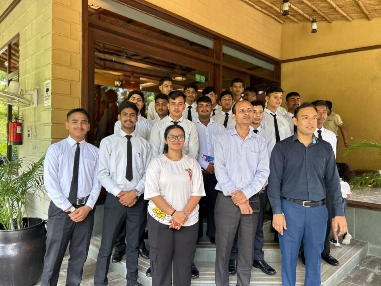 The first-year students of the Hotel Management program undertook an educational industrial visit in July 2025 to Aahana – The Corbett Wilderness, a reputed five-star eco-resort located near Jim Corbett National Park. The objective of the visit was to provide students with practical exposure to the functioning of a luxury hospitality establishment and to bridge the gap between theoretical learning and industry practices.
