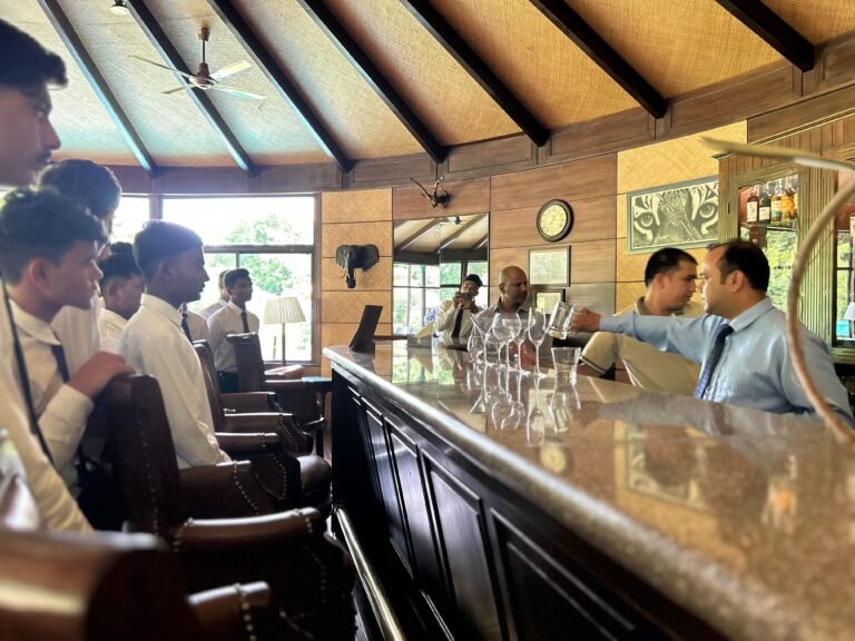 Food and Beverage Service practical at SIHM, Ramnagar gives students hands-on skills for working in Restaurants, Banquets, Room service, and Bars. Main components of practical are:-Restaurant setup and mise-en-place, Service techniques, Beverage service, Guest handling, Coordination and teamwork.