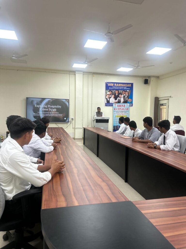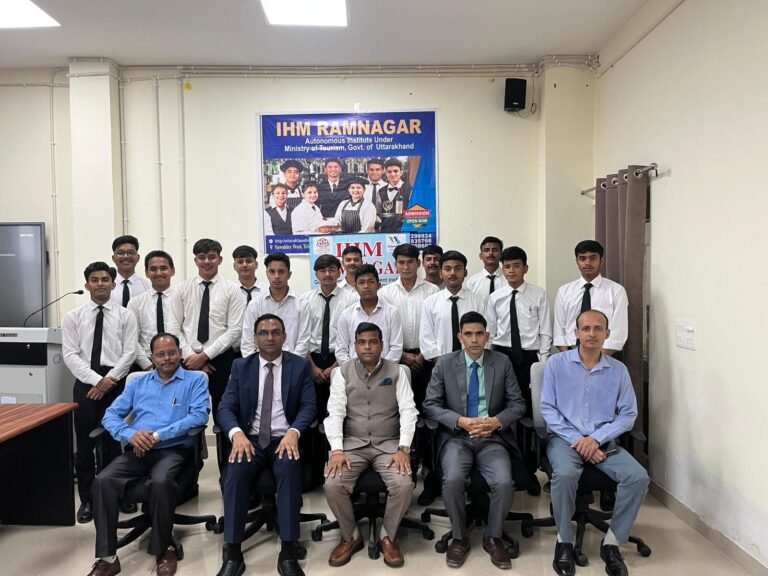 The Institute of Hotel Management (IHM), Ramnagar organized an orientation program for the newly admitted first-year students of the Diploma & Bachelor’s Degree in Hotel Management at Aahana Resort, Ramnagar in July 2025. The event aimed to familiarize students with the hospitality industry, the institute’s values, and the professional expectations of their chosen career.