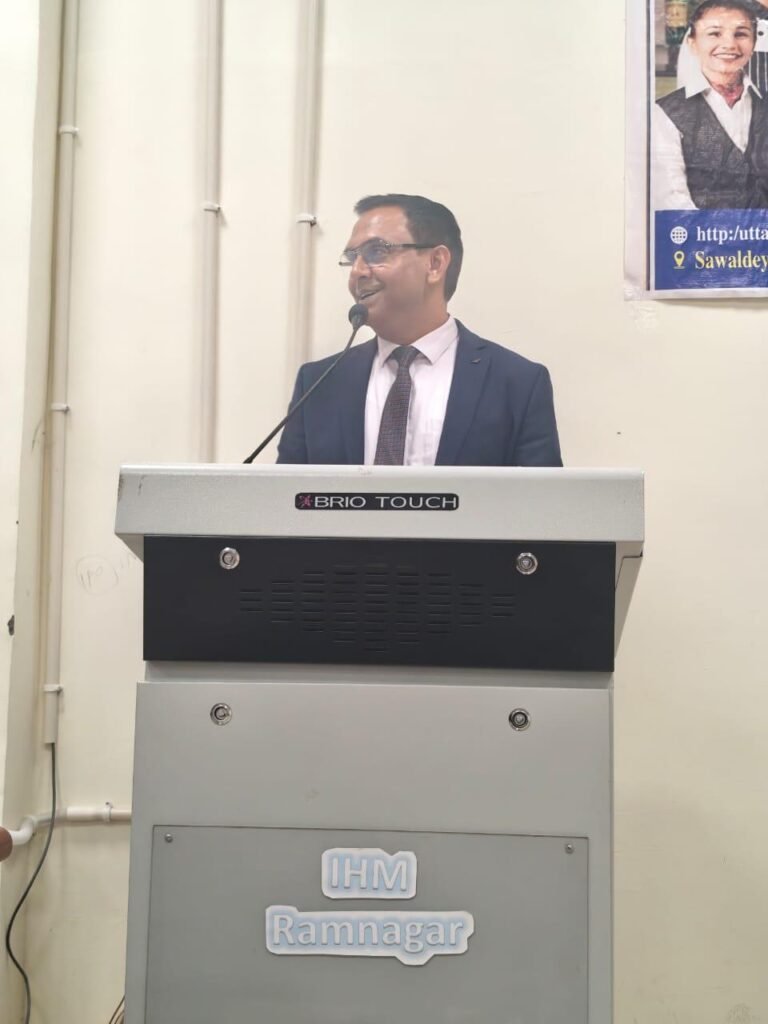 The Institute of Hotel Management (IHM), Ramnagar, organized a guest lecture by Mr. Anuj, Human Resource Manager and Ms. Janki Dangwal, Business Development Manager at Aahana Resort, a renowned five-star eco-friendly resort in Ramnagar. The session aimed to bridge the gap between classroom learning and industry practices, providing students with valuable insights into the HR functions within the hospitality sector.