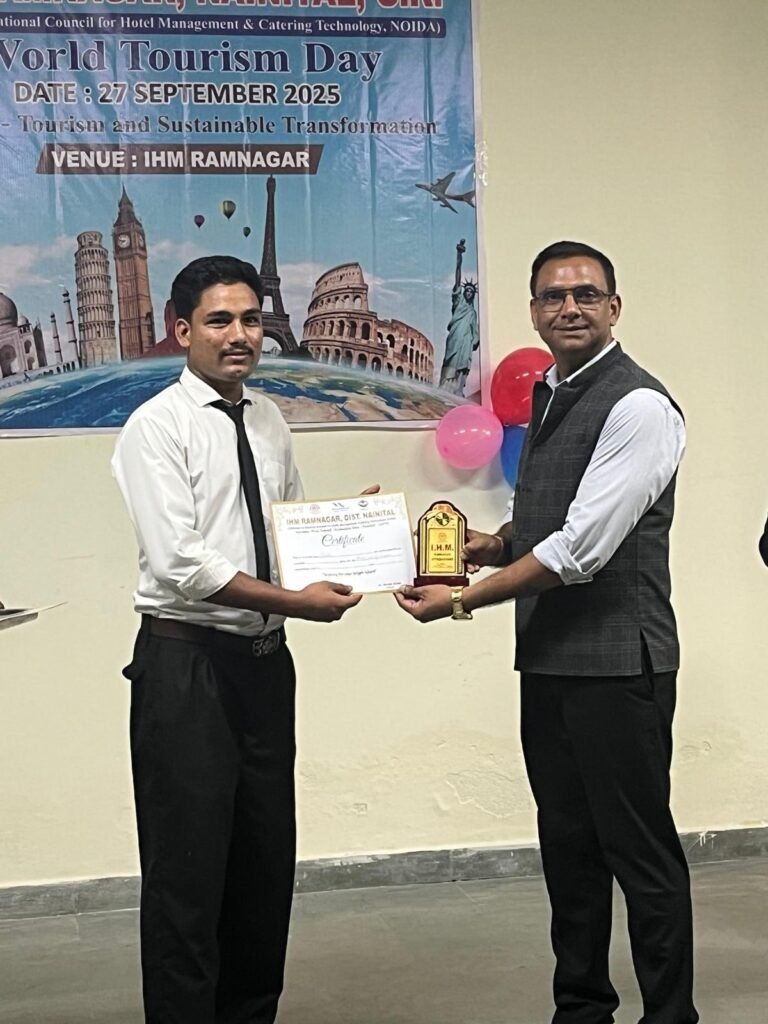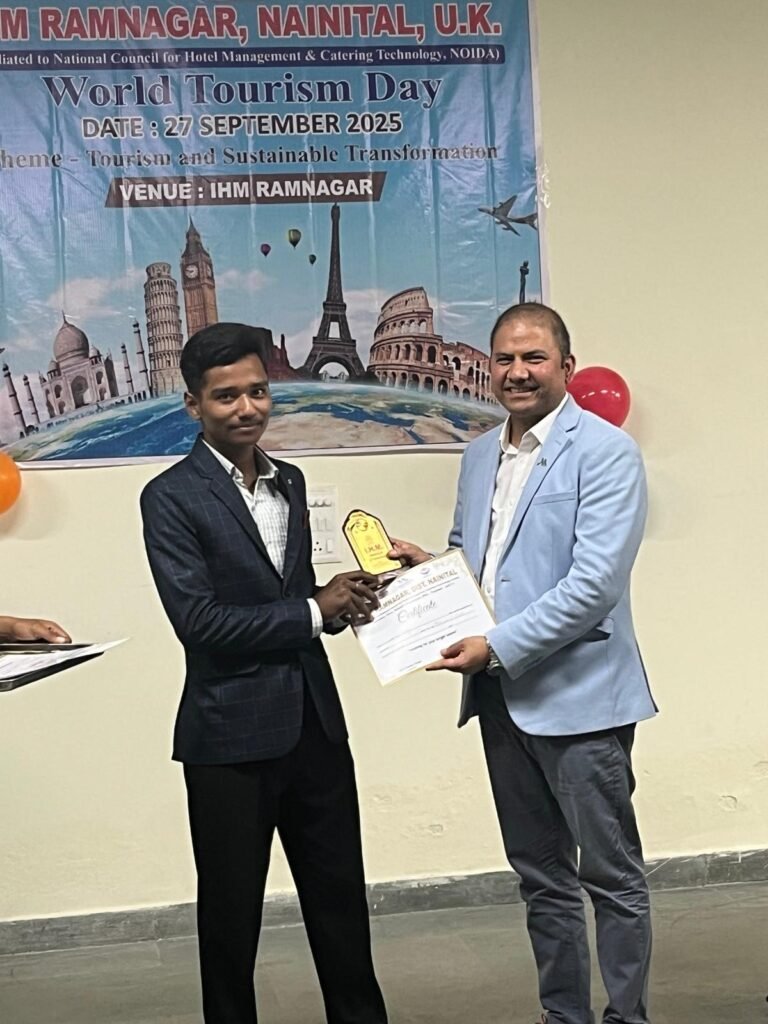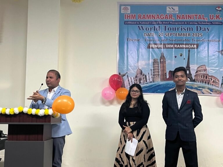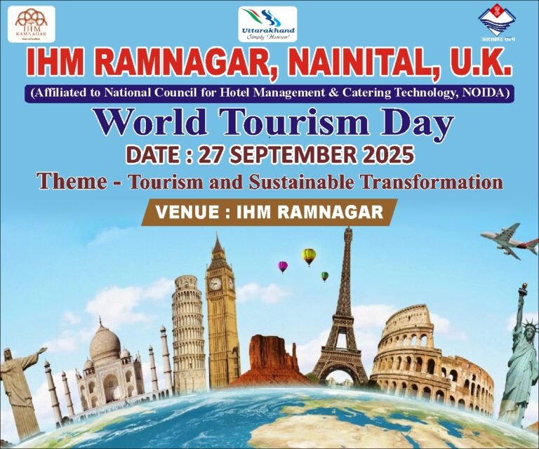 The Institute of Hotel Management, Ramnagar, Nainital, celebrated “World Tourism Day” on 7th September 2025 with great enthusiasm and participation from students and faculty members. The event highlighted this year’s global theme, focusing on sustainable and inclusive tourism development.
